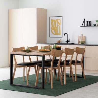Ruokailuryhmän ostaminen on helppo tapa päivittää ruokailutila kerralla kuntoon. Samalla myös varmistat, että ruokapöytä ja tuolit sopivat yhteen. Tutustu ja tilaa isolle perheelle, suureen ruokasaliin tai tilavaan keittiöön sopiva 6-8 hengen ruokailuryhmä kätevästi verkosta kotiinkuljetettuna! Katso myös 6-8 hengen ruokailuryhmät ulkokäyttöön.