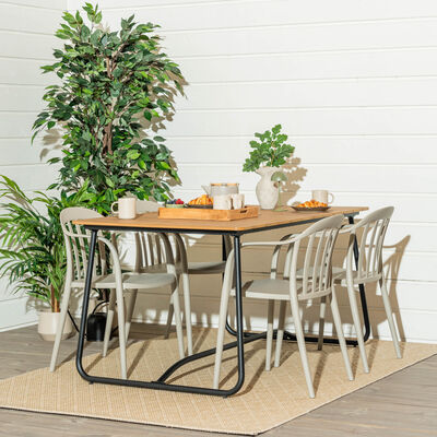 Kun terassilla on säänkestävät ja jämäkät ulkokalusteet, luonnistuu pöydän ääressä vaikkapa etätyötkin kannettavan tietokoneen kanssa. Näin voi työskennellä raittiissa ilmassa vaikka jo ensimmäisistä lämpimistä kevätpäivistä lähtien. Polyrottinkinen ruokailuryhmä antaa uusia mahdollisuuksia ruokailla ja oleskella ulkotiloissa. Jämäkän pöydän ääressä voi nauttia niin kesäisistä aamukahveista kuin illallisjuhlistakin pitkälle loppukesään asti. Tuolit on helppo pinota kokoon silloin kun niitä ei tarvita. Neljän hengen ruokailuryhmien värivaihtoehtoina löydät perinteisen tyylikästä mustaa, hillittyä ruskeaa, neutraalia harmaata tai raikkaan valkoista.