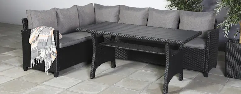 Outfit malliston polyrottinki- ja aintwood-kalusteet ovat käytännöllisiä ja helppohoitoisia kalusteita kodin ulkotiloihin. Valikoimasta löydät laajan kattauksen erilaisia pöytiä ja tuoleja. Kalusteiden kepeä muotoilu takaa modernin ja selkeän sisustuksen myös kodin ulkotiloihin.