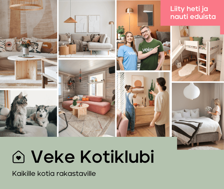 Haluatko inspiraatiota kodin sisustukseen, henkilökohtaisia etuja ja mahdollisuuden osallistua sisustusyhteisöön, joka elää ja hengittää rakkaudesta koteihin? Me Vekellä panostamme siihen, että pysyt mukana kodin viimeisimmistä trendeistä, tyyleistä ja tarjouksista. Liity nyt Veken Kotiklubiin ja pysyt aina ajan tasalla!