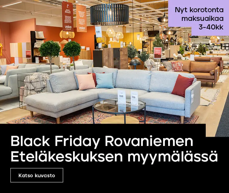 Huonekaluliike Veke Rovaniemi tarjoaa monipuolisen ja kohtuuhintaisen valikoiman huonekaluja, sisustustuotteita, mattoja sekä valaisimia. 1200 neliöisessä myymälässämme on kuusi persoonallista mallihuonetta, jotka inspiroivat oman kodin sisustamiseen. Kokenut ja ammattitaitoinen henkilökuntamme palvelee sinua mielellään ja on apunasi sisustusunelmien toteuttamisessa.