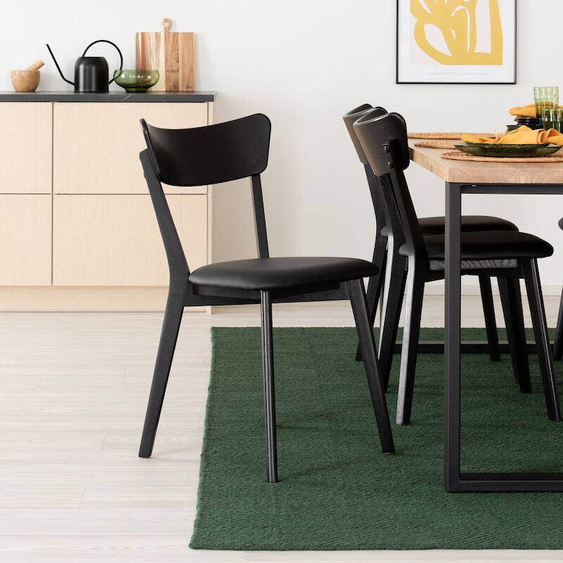 2kpl Koto tuoli musta lakattu saarni, musta PU-keinonahka istuin, asiakaspalautu