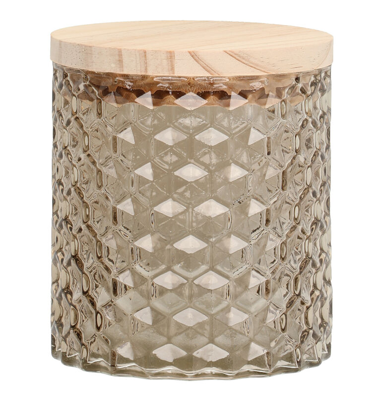 Koristeellinen lasipurkki, saatavana kolmessa eri värissä. Pintavärjätty. Puukansi