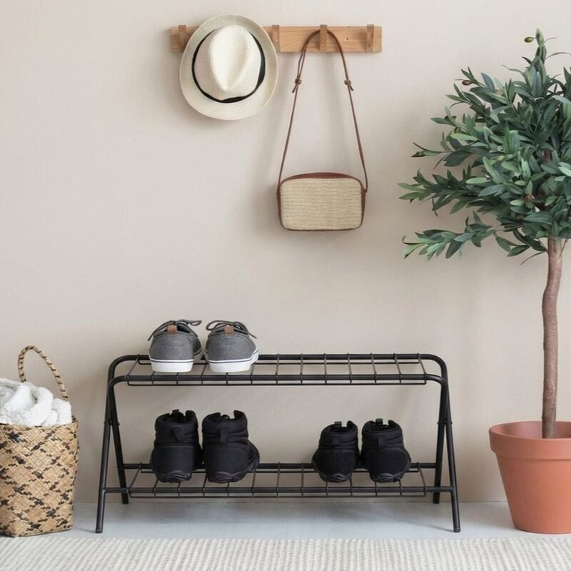 Käytännöllinen ja tilaa säästävä metallinen kenkäteline. Kokoontaitettava rakenne tekee säilyttämisestä helppoa. Mitat 70x28x31 cm.