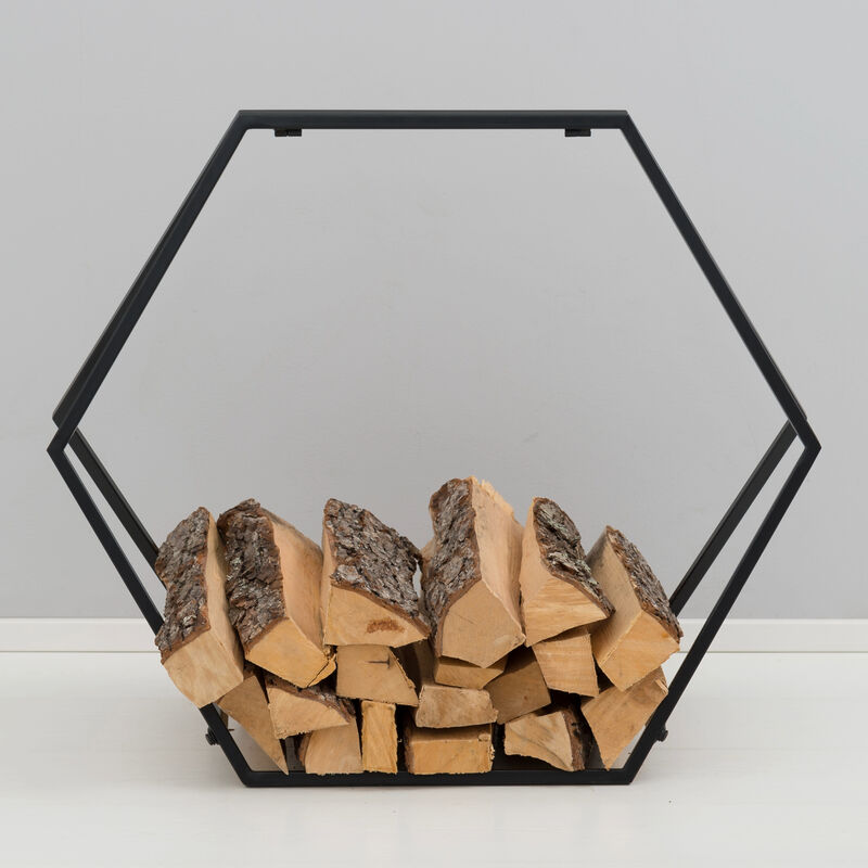 Moderni 4Living polttopuutelineModerni kuusikulmion muotoinen raudasta valmistettu polttopuuteline. Telineen koko on optimoitu yli 30 cm klapeille. Kevyt kantaa, paino 1,3 kg.