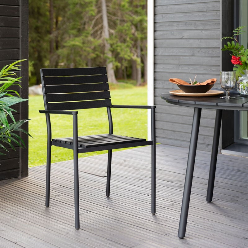 Arvid ulkotuoli on huoltovapaa valinta terassille tai pihalle. Teräsrunko on tukeva ja säänkestävä, ja aintwood-istuin sekä selkänoja kestävät kovaa käyttöä. Helppo puhdistaa kostealla pyyhkimällä.