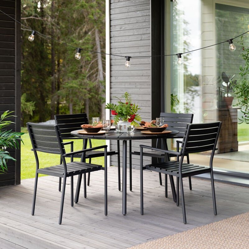 Arvid-pöytä toimii sellaisenaan tai osana ruokailuryhmää ja tarjoaa kestävän sekä huolettoman ratkaisun ulkona ruokailuun.