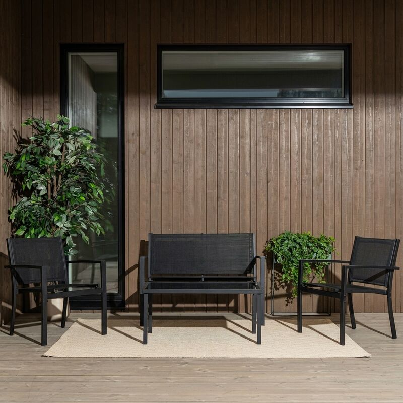 Kevyt ja moderni sohvaryhmäAteena sohvaryhmä on selkeälinjainen ja kevyt kokonaisuus lasitetulle parvekkeelle tai katetulle terassille. Siro runko, ilmava textilene-kangas ja lasikansi luovat modernin kokonaisuuden, joka on helppo yhdistää monenlaisiin tyyleihin.