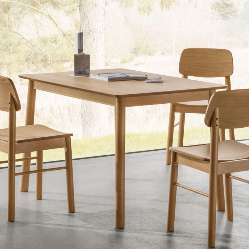 Tovi ruokapöytä on selkeän skandinaavinen valinta ruokailutilaan. Pyöristetyt muodot ja mattapintainen tammiviilu antavat pöydälle viimeistellyn ja ajattoman ilmeen.