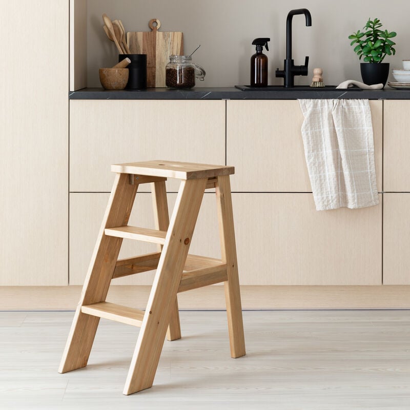 Basic porrasjakkara on arjen luottokaveri, joka tekee korkealle kurkottamisesta helpompaa ja turvallisempaa. Tukeva täyspuinen jakkara sopii keittiöön, vaatehuoneeseen ja eteiseen, ja toimii tarvittaessa myös kukkatasona tai pikkupöytänä.