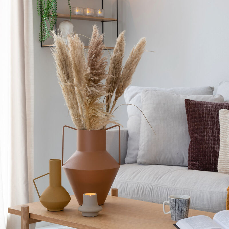 Moderni ja yksinkertaisen kaunis ruskea metallimaljakko.