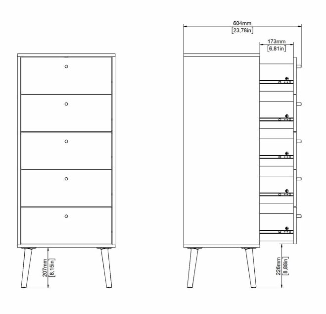 Kapea lipasto pienempiin tiloihinBodo kapea lipasto on näppärä säilytysratkaisu, joka sopii erityisesti pienempiin huoneisiin tai ahtaisiin väleihin. Viisi vetolaatikkoa tarjoavat yllättävän paljon säilytystilaa – olipa kyseessä vaatteet, pientavarat tai vaikka askartelutarvikkeet.