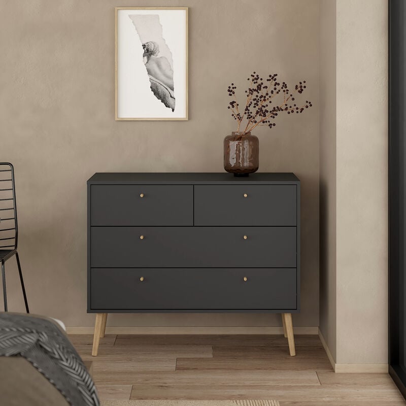 Ajaton ja käytännöllinen lipastoBodo lipasto tarjoaa käytännöllisen ja kauniin säilytysratkaisun arkeen. Yläosan kaksi pienempää laatikkoa sopivat täydellisesti pientavaroille ja asiakirjoille, kun taas kaksi tilavaa laatikkoa kätkevät helposti vaatteet, petivaatteet tai vaikka lasten lelut.