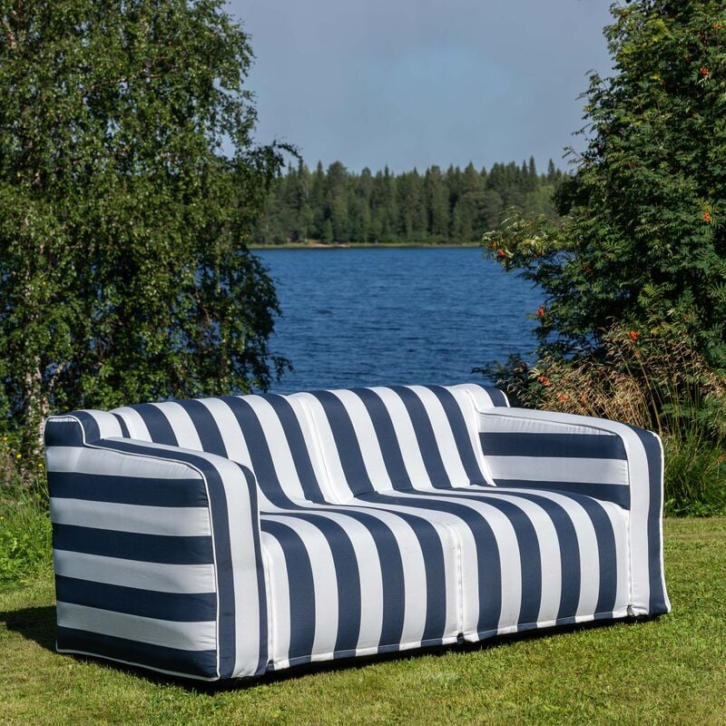 Buff 2-istuttava sohva käsinojilla tummansininen raita