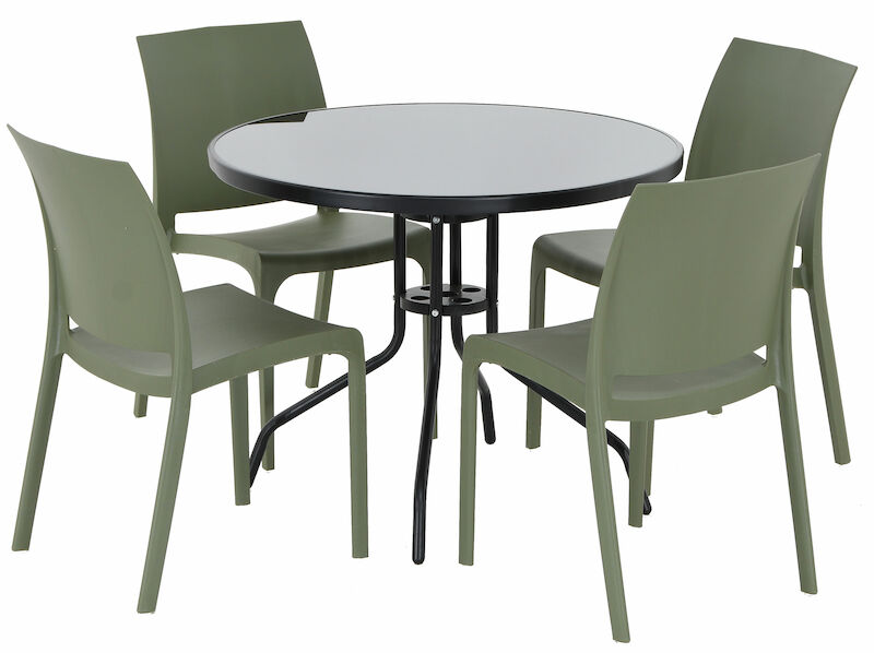 Cafe-Iiris 4-hengen pyöreä ruokailuryhmä musta/vihreä