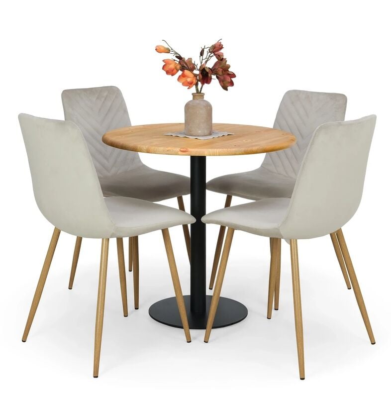 Cafe on kompakti ja tyylikäs pyöreä ruokapöytä, joka sopii täydellisesti pieneen kotiin tai kahvilamaiseen tilaan. Mäntykansi ja musta metallijalka tuovat yhdistelmän lämpöä ja modernia ilmettä.