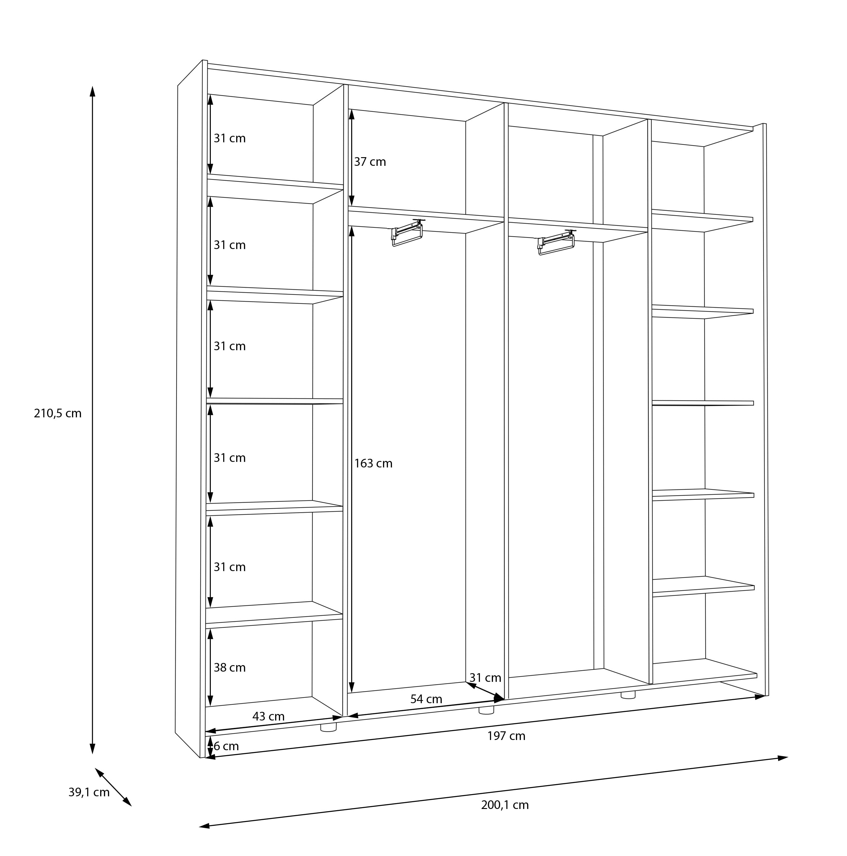 Tyylikäs Candy vaatekaappi liukuovilla 200x210Candy liukuovikaappi on käytännöllinen valinta, kun tarvitset säilytystilaa kompaktisti. Sen alle 40 cm syvyys tekee siitä erinomaisen ratkaisun eteiseen, makuuhuoneeseen tai muihin kapeampiin tiloihin, joissa jokainen sentti on tärkeä. Liukuovet liikkuvat kevyesti metallikiskoilla, joten kaapin käyttö on sujuvaa myös silloin, kun tilaa ovien avaamiseen ei ole ylimääräistä.