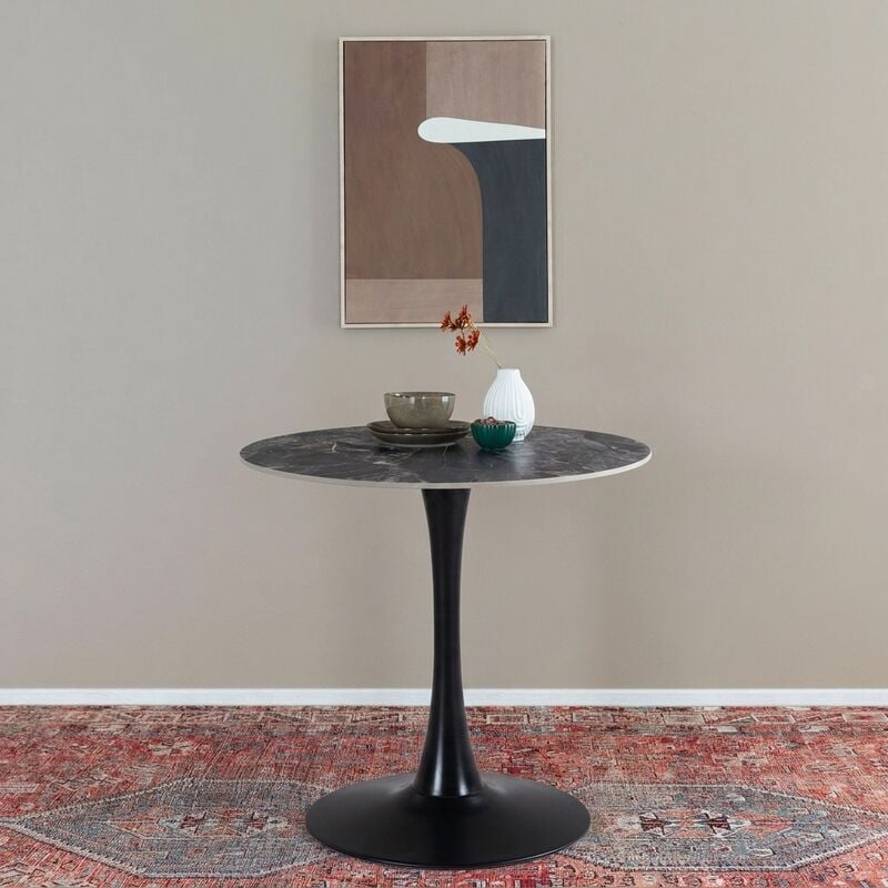 Tyylikäs Caron pyöreä ruokapöytä Ø80 cm- Kestävä ja helppohoitoinen sintrattu kivikansi