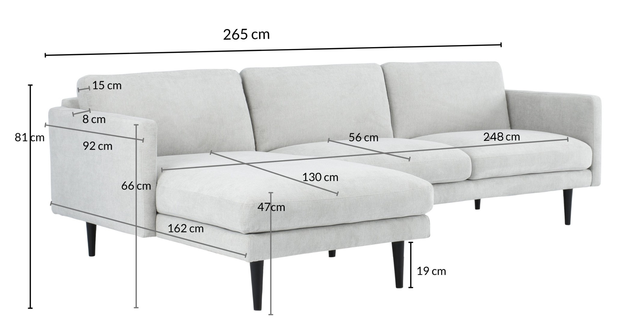 Classic divaanisohva oikea vaaleanharmaa, Matrix 15, Jalka J-138 musta