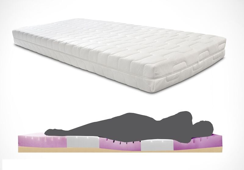 - Patjassa 5-vyöhyke jako. Vyöhyke jaon vuoksi patja tukee hyvin nukkujan vartaloa. Hartioiden, lantion ja polvien kohdalla pehmeämpi vyöhyke. Näin hartiat ja lantio pääsee paremmin painumaan patjaan.