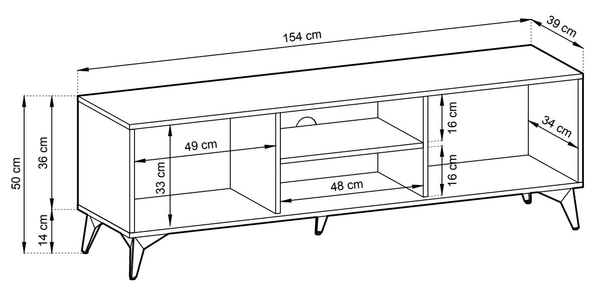 Dumont tv-taso 154x39x50 cm cm tammi/musta