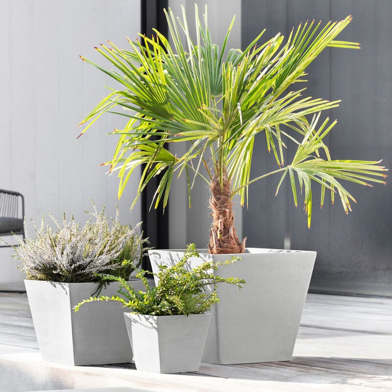 Kierrätettävä Ecopots Rotterdam ruukkuEcopotsin Rotterdam ruukuissa korostuu suorat linjat. Ruukut ovat täydellisiä esim. sisäänkäynteihin tai puutarhiin. Rotterdam on valmistettu 100% kierrätetyistä materiaaleista, kuten kaikki Ecopotsin ruukut. Ecopots brändistä voit lukea lisää Brändi sivuillamme, jonka jälkeen viimeistään voit varmistua siitä, että haluat Ecopots ruukkuja kotiisi. Ruukku on valmistettu 80% kierrätetystä muovista ja 20% kierrätetystä luonnollisesta kivijauheesta ja sen CO² päästöt on kompensoitu. Ruukku on viimeistelty käsityönä, se on UV-suojattu, kevyt, sopii sisä-ja ulkokäyttöön, kestävä ja kaiken lisäksi kestää pakkasta! Ruukkujen käyttöikä on jopa 10 vuotta. Ruukun pohjassa on tulppa, joka helpottaa ylimääräisen veden pois pääsyä. Ruukku soveltuu ympärivuotiseen käyttöön, kunhan pohjatulpan muistaa ottaa pois, jotta ylimääräinen vesi pääsee poistumaan ruukusta. Jos pohjatulppaa ei ota talveksi pois, voi ruukku haljeta. Sisätiloissa kannattaa harkita lautasen käyttöä ruukun alla, vaikka tulppa onkin lähes 100% tiivis.