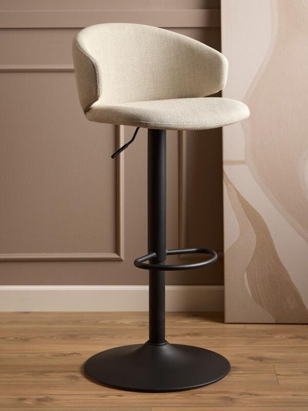 Ella baarituoli pyörivällä istuimellaElla baarituoli on helppo valinta, kun haluat keittiöön tai baaritasolle mukavuutta ja tyylikkyyttä yhtä aikaa. Pyörivä istuin tekee kääntymisestä sujuvaa ja korkeutta (61-82 cm) voi säätää kaasujousen avulla juuri sopivaksi eri tilanteisiin.