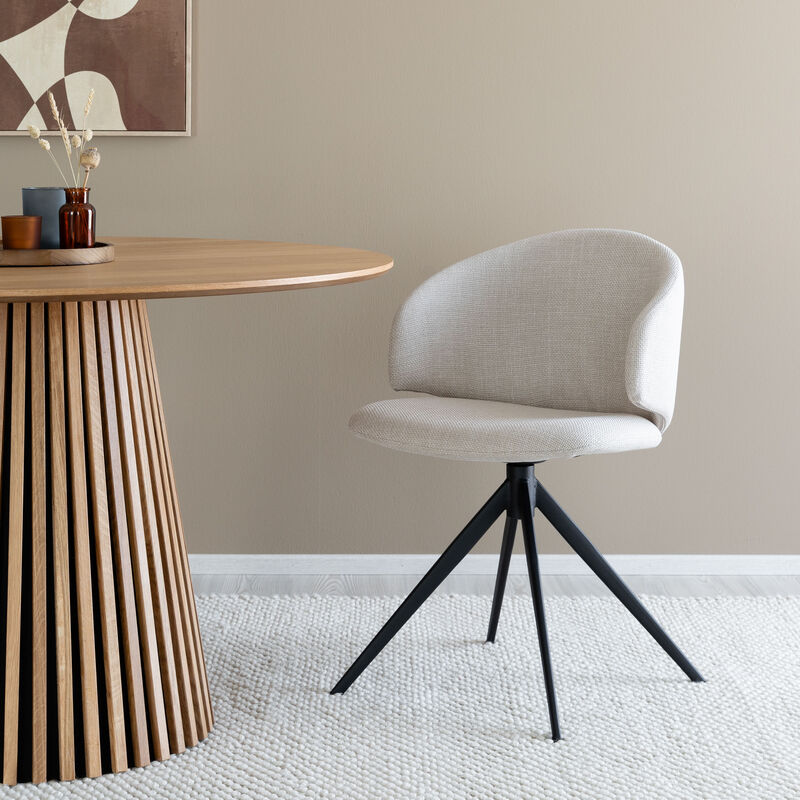 Kauniisti muotoiltu Ella-tuoli sopii yhtä hyvin ruokailutilan ääreen, työhuoneeseen kuin olohuoneen lisäistuimeksi. Kääntyvä istuinosa tuo arkeen helppoutta ja tekee tuolista toimivan myös työtuolina esimerkiksi kotitoimistoon.