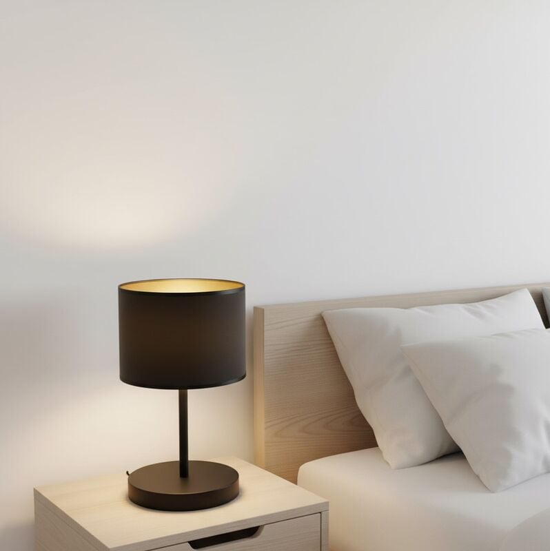 Ylellinen Emibig Hilde pöytävalaisinHilde on tyylikäs ja ylellinen pöytävalaisin Valaisimen on pulverimaalattua metallia jossa on kaunis kangasvarjostin kullanvärisellä sisustalla. Kangasvarjostimen kullanvärinen sisus luo mukavaa kontrastia ja antaa valaisimelle modernin ilmeen. Ylöspäin suunnattu koristevalaistus luo huoneeseen ainutlaatuisen tunnelman. Sopii olohuoneeseen kuin makuuhuoneen sisutukseen.