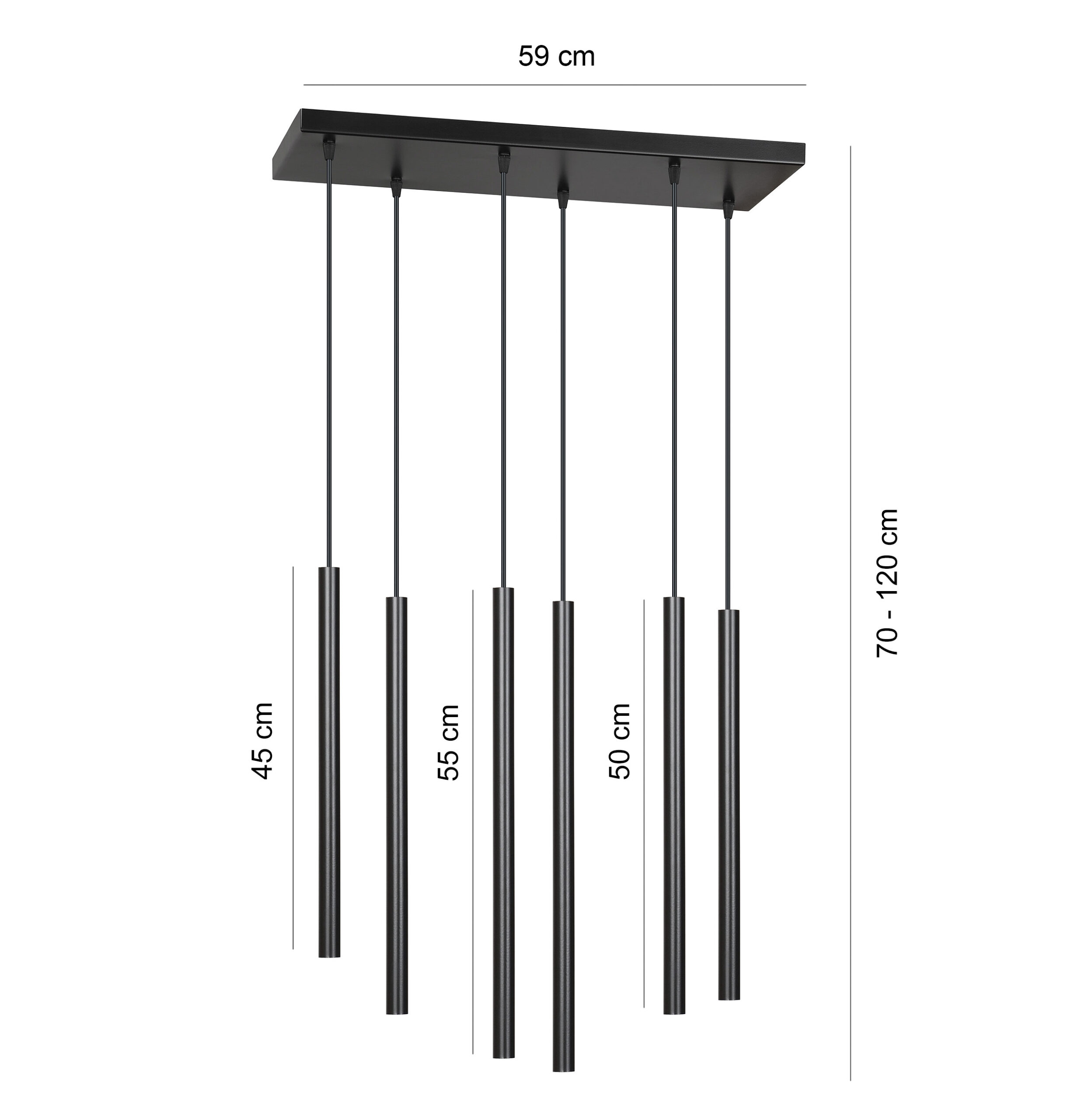 Metallista valmistettu näyttävä riippuvalaisin, jossa on moderni muotoilu. Pitkänomaisista lampunkuvuista valo heijastuu kauniisti suoraan alaspäin levittyen alapuolella olevaan tilaan. Valaisimeen tarvittavat G9 kantaiset lamput ostettavissa erikseen.