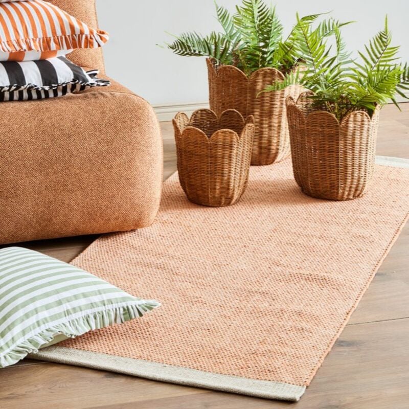 Helmi puuvillamatto on valmistettu vastuullisesti käsityönä Intiassa. Viimeistele maton käyttöä suojaamalla se matonsuojasuihkeella ja lisää käyttömukavuutta matonalusverkolla, joka auttaa pitämään maton hyvin paikallaan.