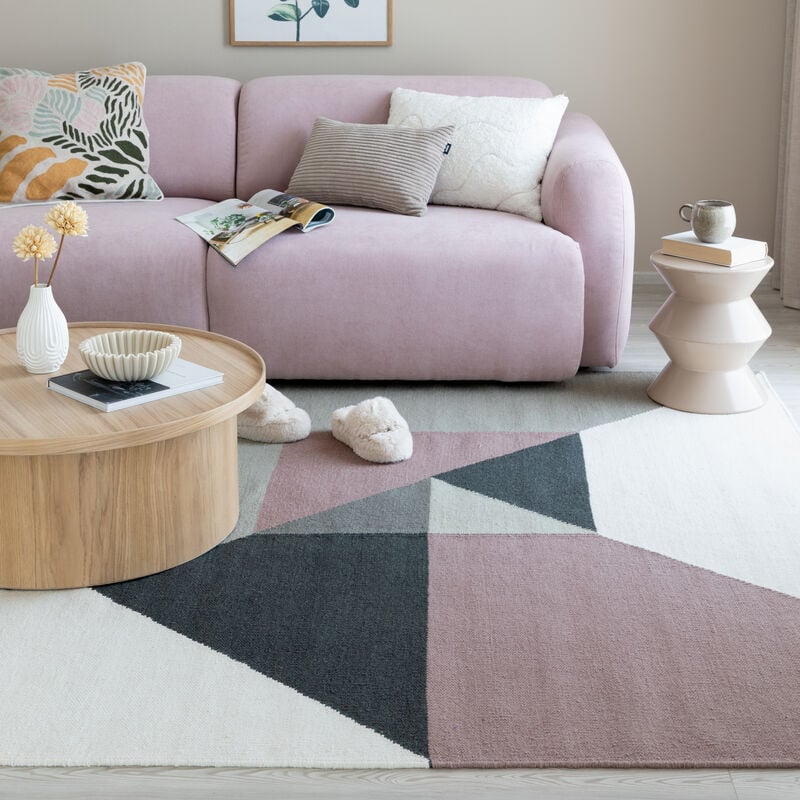 Finarte Triangle villamatto 200x300 cm harmaa/roosa