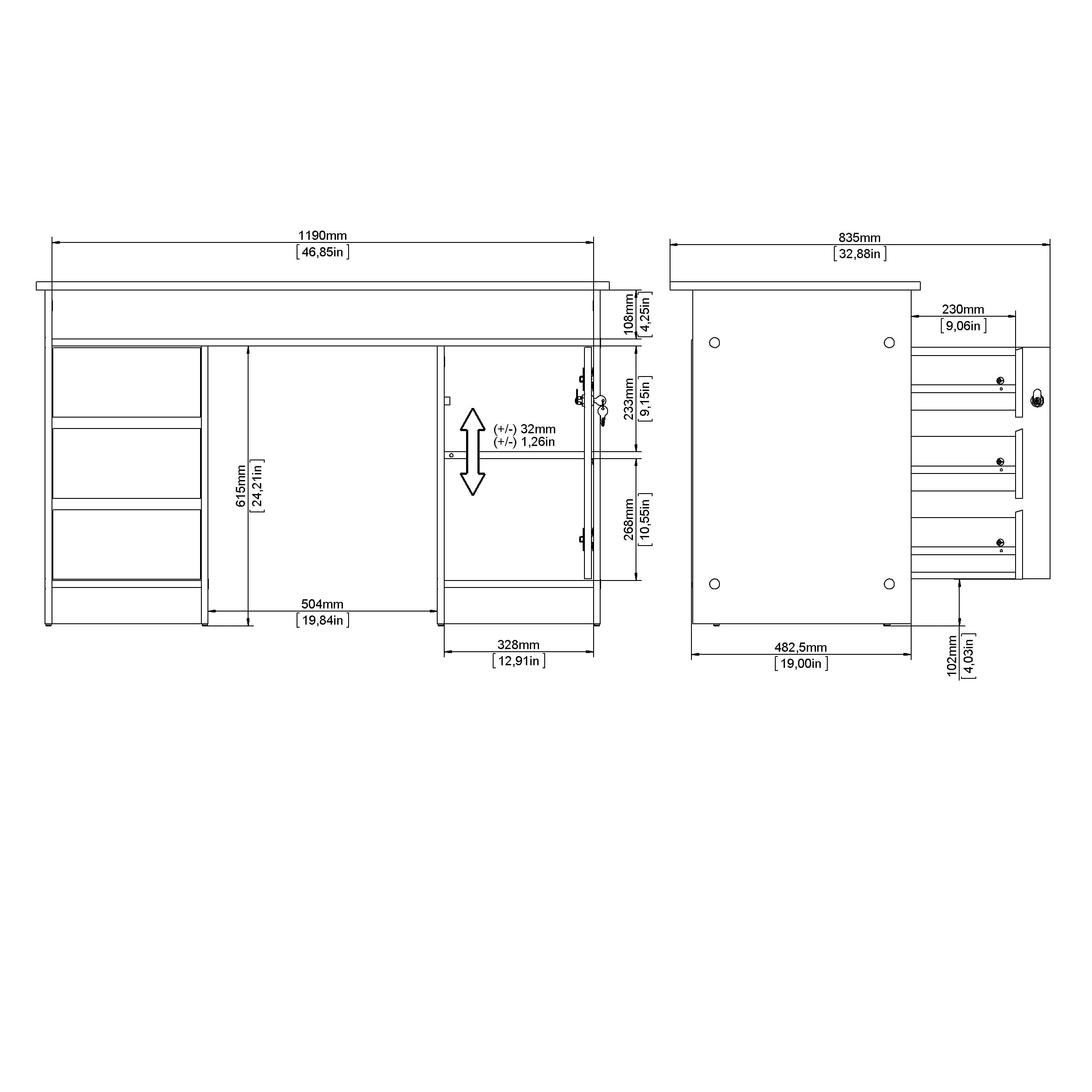 Funktion työpöytä 3-laatikkoa+kaappi tammi/valkoinen
