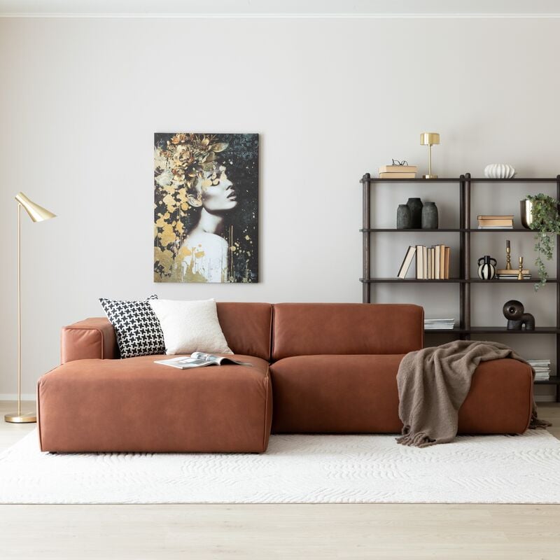 Hali divaanisohva avopäädyllä vasen nahkaverhoiltu konjakinruskea Kentucky 9