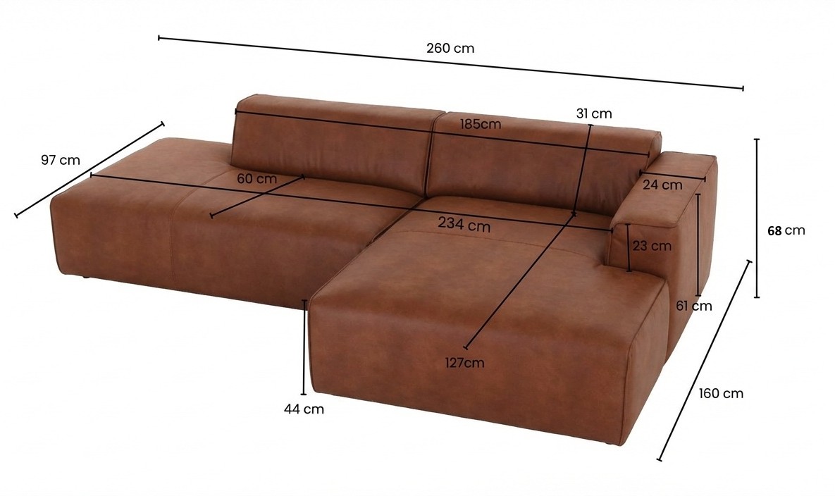 Hali divaanisohva avopäädyllä on näyttävä ja mukava valinta olohuoneeseen. Bonded-nahkainen verhoilu näyttää ja tuntuu aidolta nahalta, kiinteät tyynyt helpottavat arkea ja muhkea istuin kutsuu rentoutumaan koko perheen voimin.