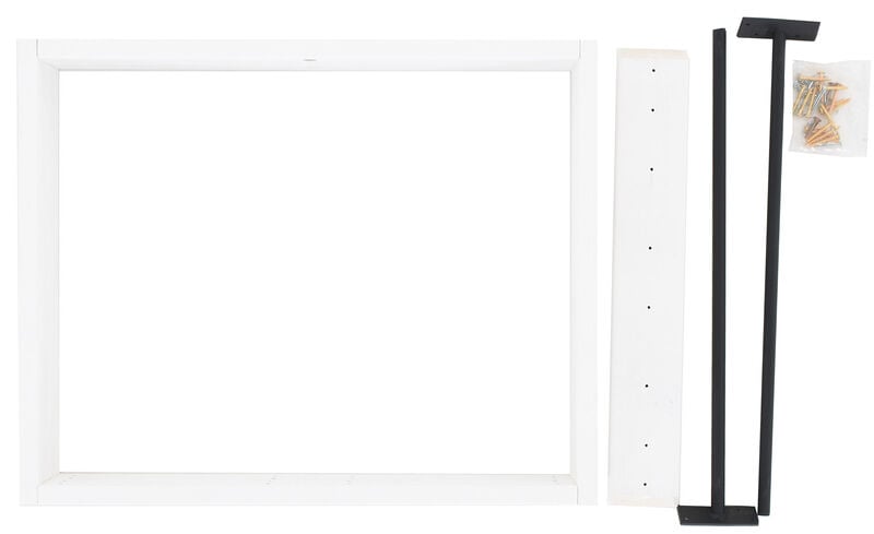 Tyylikkäät männystä valmistetut penkin jalat. Näyttävänä yksityiskohtana on pulverimaalattu metallinen tukitanko.