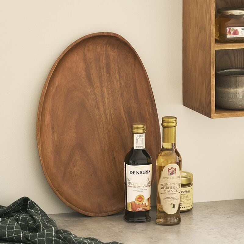 Akaasiapuusta valmistettu Arianna tarjotinAkaasiapuusta valmistetun Arinna tarjottimen pehmeästi pyöristetty, orgaaninen muoto näyttää rennolta pöydällä ja on mukava käsitellä. Koko 28×39×2,5 cm tarjoaa sopivasti tilaa leivonnaisille, hedelmille tai juustoille ja toimii yhtä hyvin sisustusasetelmien, kynttilöiden tai mausteiden alustana. Kaunis syykuvio elävöittää kattauksen ja tuo puunsävyä osaksi sisustusta eri tyyleissä.