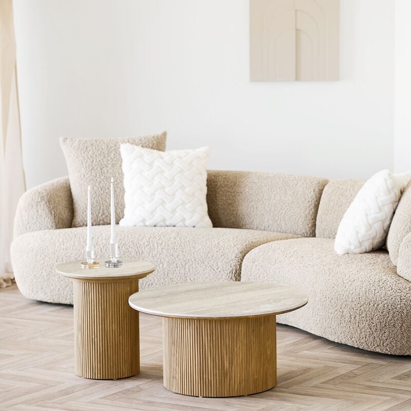 House Nordic Athens pyöreä sohvapöytä ø80 cm travertiini/tammi