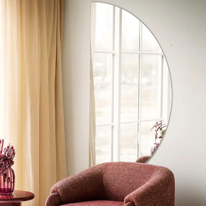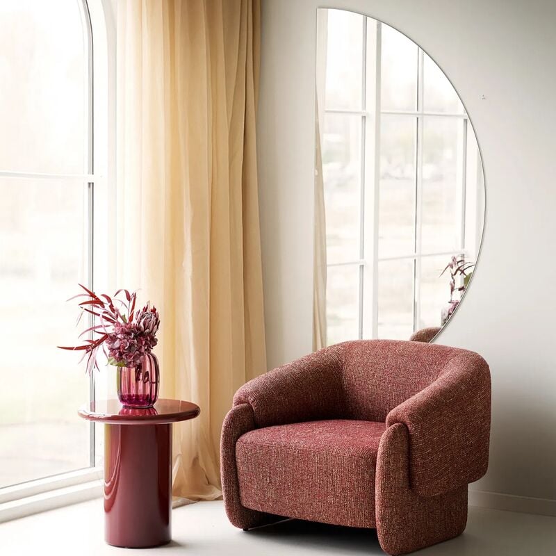 Paola on rohkea, mutta selkeä valinta, kun haluat tuoda tilaan ilmettä ja avaruutta. Puolikuu-muoto piirtää seinälle pehmeän kaaren, joka heijastaa kauniisti luonnonvaloa ja luo huoneeseen lisää syvyyttä. Kehyksetön reuna pitää ilmeen ilmavana ja sopii moneen tyyliin skandista pehmeään bohoon.