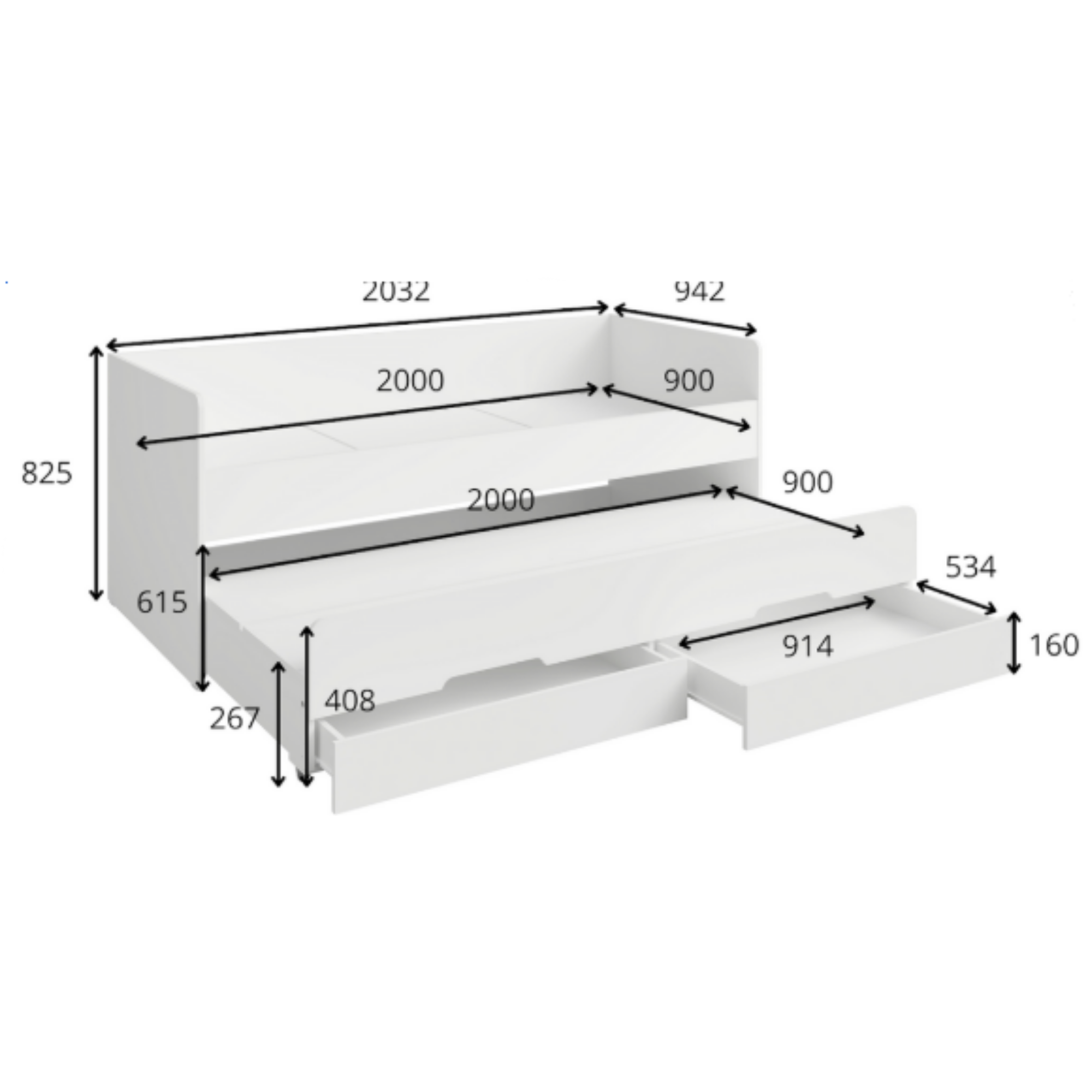 Jemma sänky yhdistää nukkumisen, säilytyksen ja varavuoteen yhteen toimivaan kokonaisuuteen. Kaksi laatikkoa pitävät tavarat järjestyksessä ja lisävuode tuo joustavuutta arkeen.