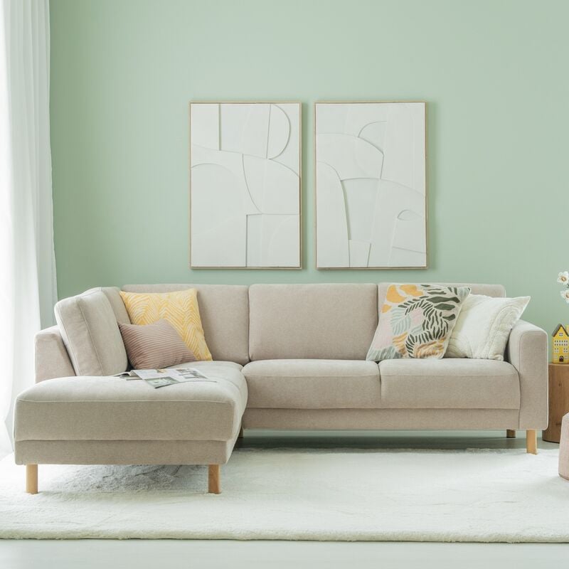 Joki avokulmasohva vasen beige Storm 6, tammijalat