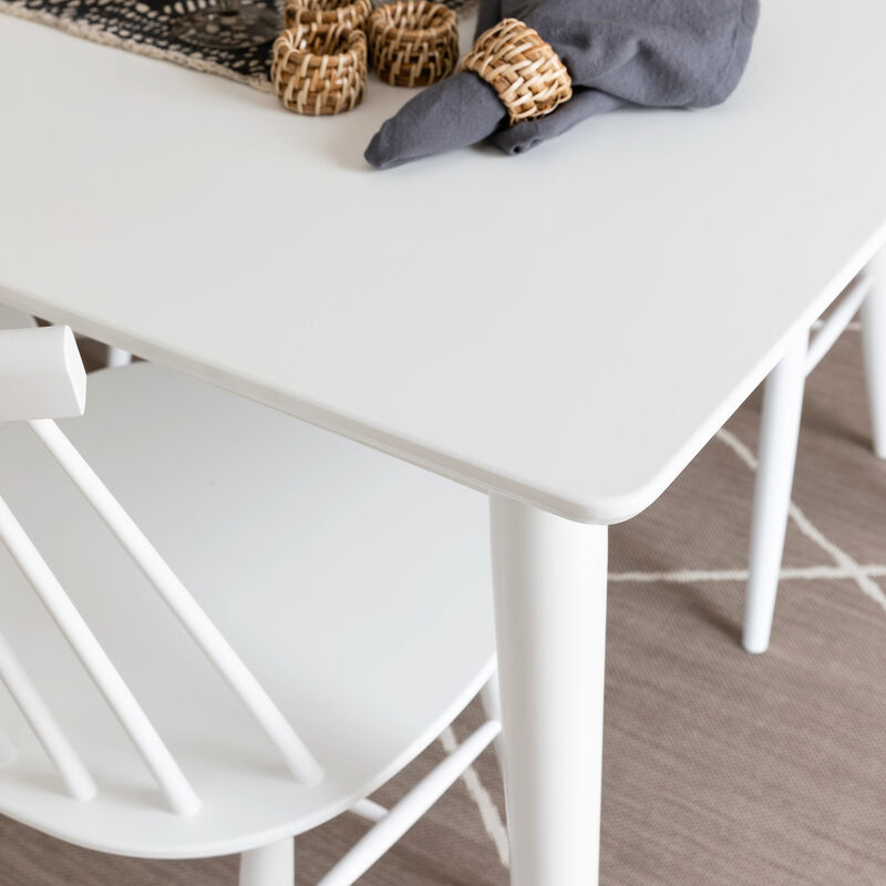 Kokonaan valkoinen malli, jossa sekä kansi että jalat ovat maalattua MDF-levyä ja sarjapuu koivuvaneria. Pinta on käsitelty maalaamalla.