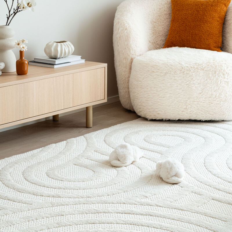 Kaarre matto tuo kotiin rauhallista rytmiä ja lempeää ylellisyyttä. Kolmiulotteinen pinta tekee matosta katseenvangitsijan ja sen pehmeä, lähes pumpulimainen tuntu kutsuu myös paljaita jalkoja pysähtymään hetkeksi. Matossa on noin sentin korkuinen nukka, jossa yhdistyy silmukka- ja leikkuunukka kauniisti toisiinsa.