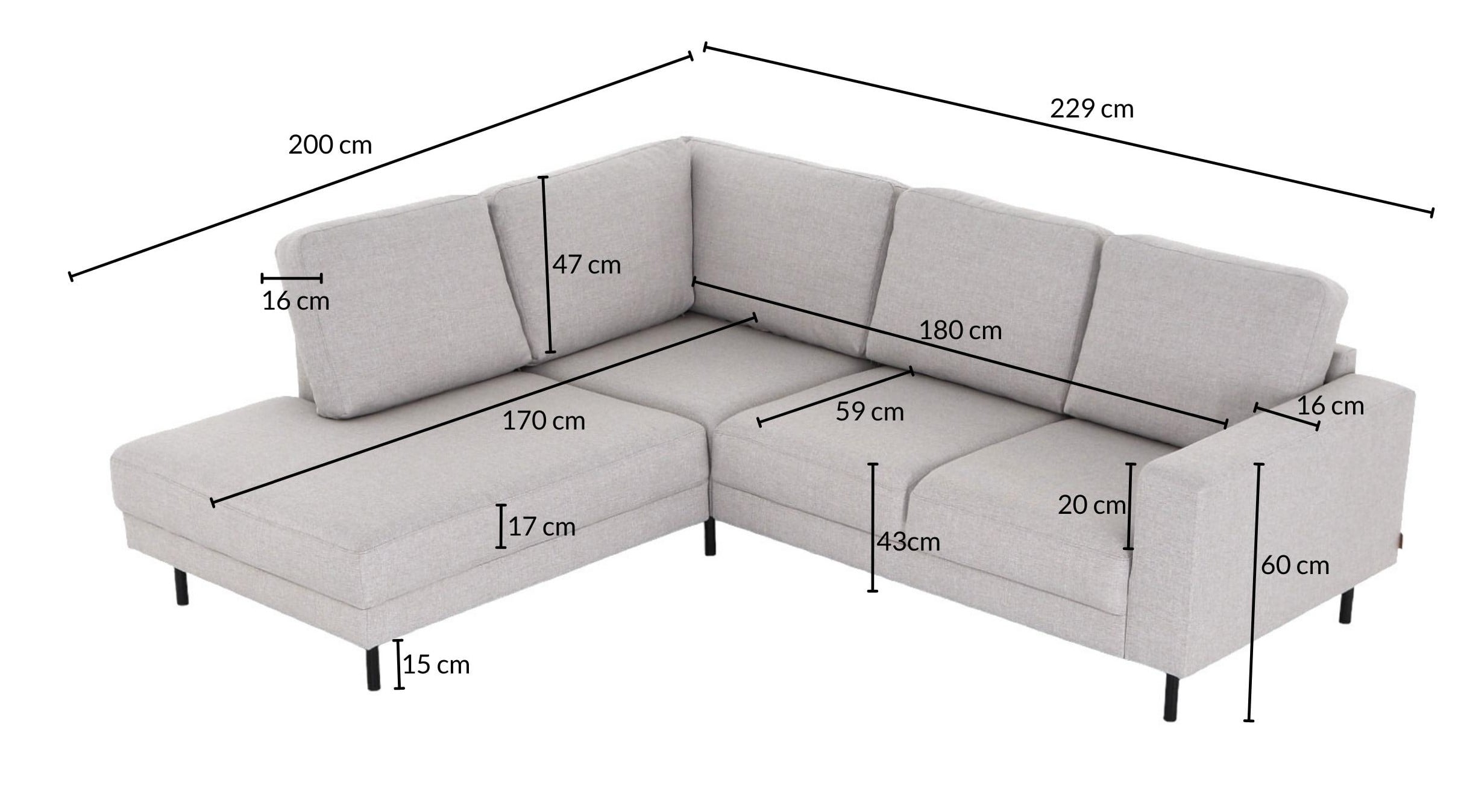 Kairo avokulmasohva oikea hiekka Hygge 10