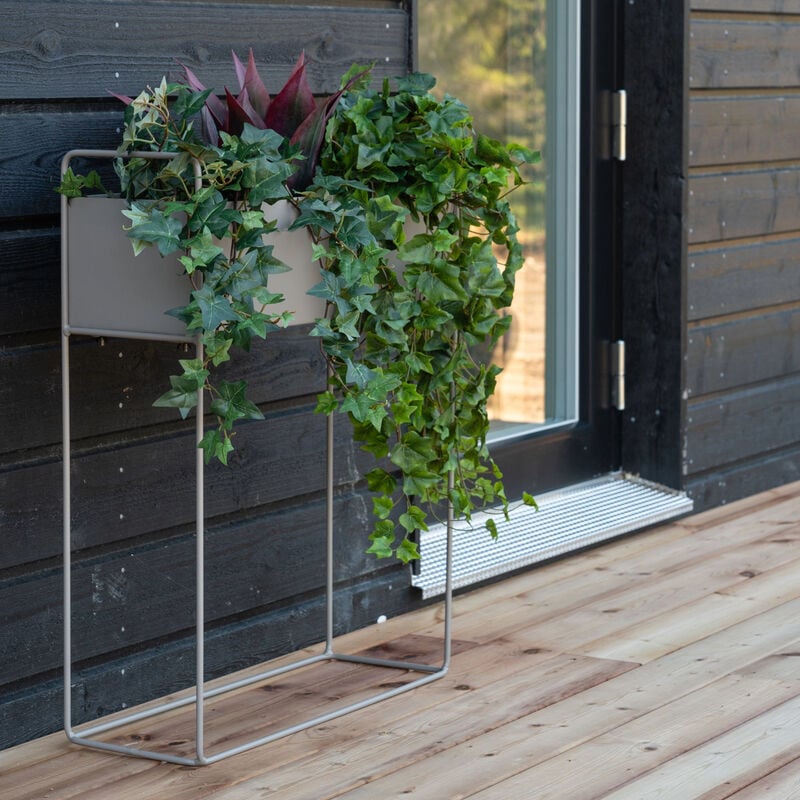 Linjakas Kallas kukkatelineModerni ja tyylikäs Kallas kukkateline viherkasveille ja kukille. Kukkateline on valmistettu laadukkaasta metallista, joka on maalattu. Kukat ja kasvit suositellaan laittamaan telineeseen istutusruukuissa niin, että multa ei tulee suoraan metalliseen laatikkoon, jotta kostea multa ei vaurioita sitä. Soveltuu sisäkäyttöön, sekä katettuun ulkotilaan. Telinettä voi säilyttää talvisin ulkona, mutta sen pitää olla tyhjä tai se voi jäätyessään haljeta.