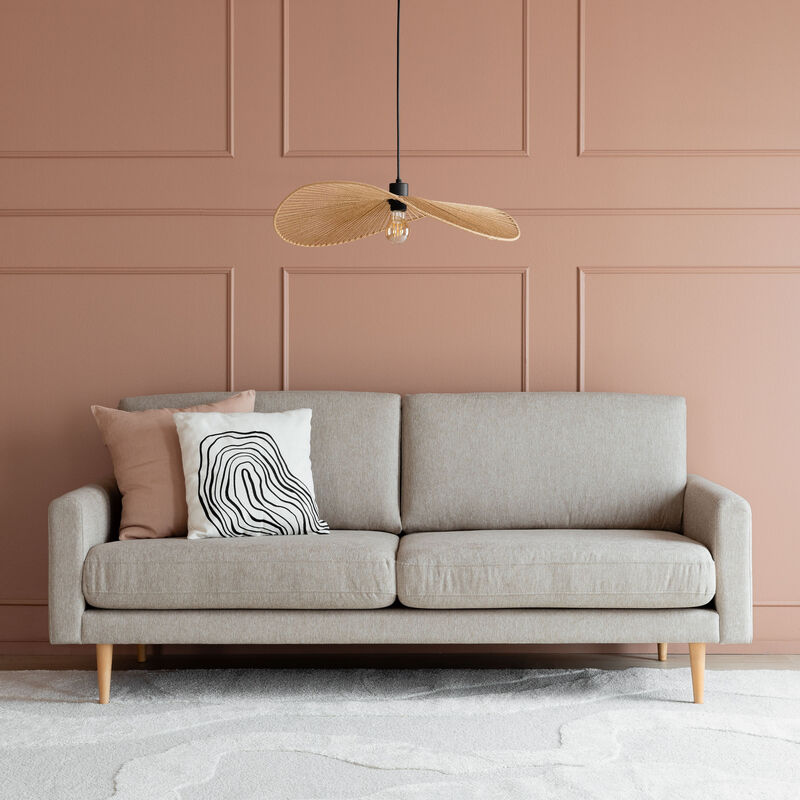Tyynyjen täytteenä on ryhdikäs ja tukeva E30-kimmovaahto, joka on saanut turvallisen ja ympäristöystävällisen CertiPUR-sertifikaatin. Lisäksi pinnalla on vanua. Jalat kiinnittyvät helposti M8-kierteellä, ja voit valita tyyliisi sopivat mustat metallijalat tai lämpimän sävyiset tammijalat.