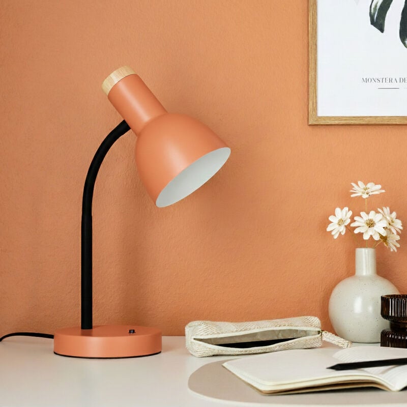 Selkeälinjainen pöytävalaisin, jossa maalattu metalli ja lämmin puuyksityiskohta tuovat tilaan pehmeyttä. Valo on helppo suunnata lukemiseen, työskentelyyn tai tunnelman luomiseen. Valaisin toimii E27-kantaisella lampulla.