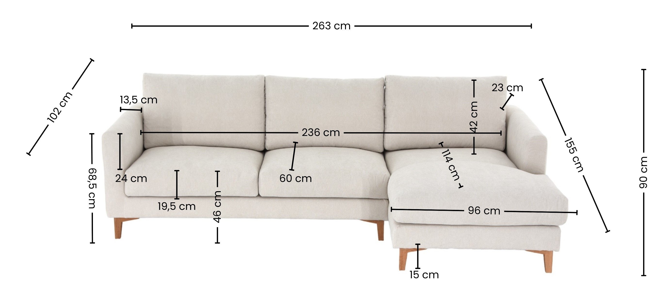 Kuori divaanisohva vasen, Matrix 02 vaalea kitti jalka J-128 tammi