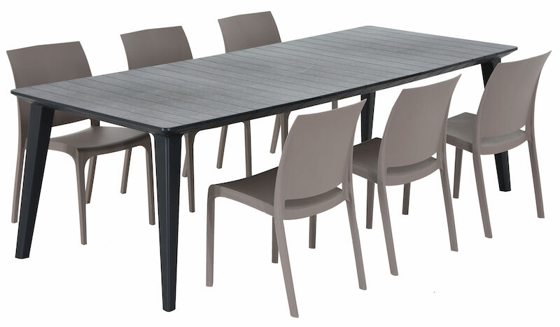 Huoltovapaa Lima-Iiris 6-hengen ruokailuryhmäSelkeälinjainen ja huoltovapaa Lima-iiris ruokailuryhmä, jota on saatavilla pirteillä värivaihtoehdoilla.