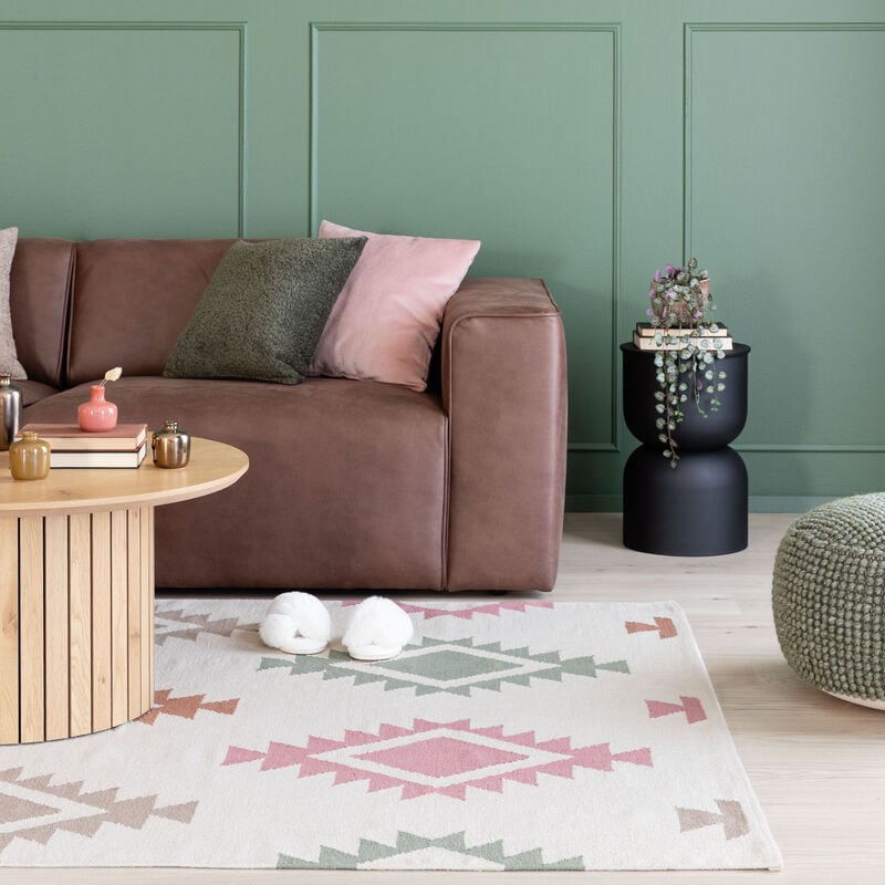 Linda puuvillamatto on helppo tapa tuoda kotiin lämpöä ja eloa. Käsin kudottu pinta ja kelim-tyylinen kuosi tekevät matosta kiinnostavan, mutta silti helposti yhdisteltävän osan sisustusta. Pehmeät sävyt sulautuvat luontevasti erilaisiin tyyleihin, oli kotisi sitten pelkistetty tai kerroksellisempi.